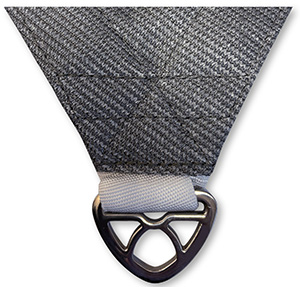 Bei jeder Ecke ist ein Metallring eingenäht.