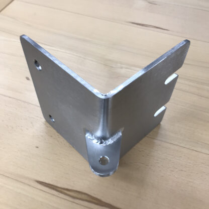Diese Eckwandplatte aus Edelstahl dient zur massiven Befestigung eines Sonnensegels.